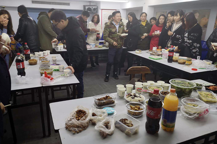 桂倫的各位同仁來自五湖四海,有來自東北、安徽、湖北、福建、江蘇、上海等等,看著那一道道代表著家鄉(xiāng)特有的菜肴,大家井然有序排起了長龍,圍繞著美食,邊走邊吃,時不時有同事拍照留念,這一幕溫暖而又開心的瞬間定格在那一刻。